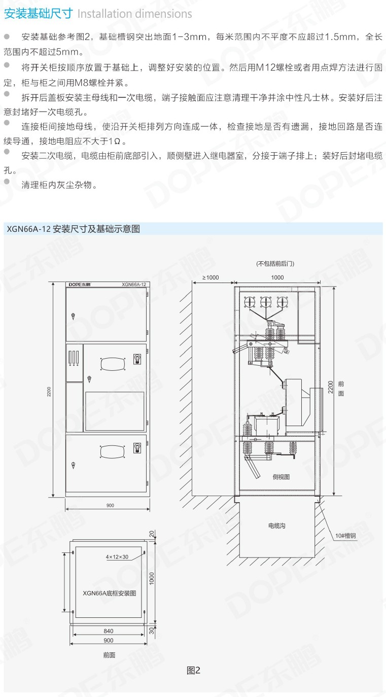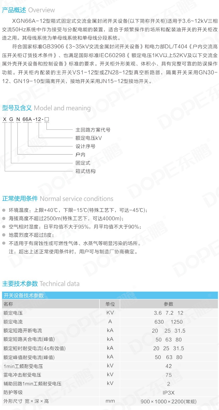 XGN66A-12箱式固定型交流金属封闭开关设备是用于3.6~12kV三相交流50Hz系统中作为接受与分配电能的装置,